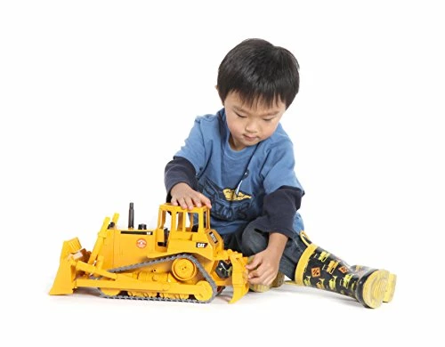 Bought this for a three year old boy who’s been watching other kids on many Saturdays play with their construction equipment or shovels and pails in the sand at the local parks. A year before he received a large size sturdy Tonka dump truck. I thought he needed a bulldozer and/or loader to really have fun using his imagination in the sand pit. So I got him the bulldozer for Christmas as the price had dropped to an affordable $17+/-. It normally retails for about $34 which I thought was too much especially since I found some with remote controls at Toys R Us for nearly 1/2 that price. Plus I didn’t want a remote control as I felt that this is a toy that I thought that my son would want to get “down and dirty” in the sand and reviews that I read on units w/remote controls had durability issues. I ultimately bought it because I couldn’t find a decent alternative and the photos looked fine and the reviews that I found on the net spoke highly of Bruder Toys.I wish I could’ve found more information on the construction of this product and especially a video review to actually see it in action.When it arrived I was a little suspicious because it looks great in the graphics but it is very lightweight, not what I expected from such a large bulldozer. (it takes my son to use both hands to move it because of the size not the weight) Well after Christmas it was time to put it to the test and we went to a park where my son played with it but was frustrated because it doesn’t move to well in the sand. It wasn’t heavy enough nor strong enough to push the sand aside. If you have powdery sand then perhaps but any other type he has had to struggle with it. Finally to a point where the tracks dislocate, they are easy to repair but don’t stay on too well in the sand. The one year old Tonka truck however moves with ease and is more a favorite with him and his friends. They gravitate initially to the bulldozer because it looks cool but once they realize the difficult mobility with it try to pass if off to someone else.It’s an okay toy if you are playing inside but I wouldn’t recommend it for the sandbox let alone dirt areas such as your garden it just won’t hold up to well. I would’ve rated it lower but my son still takes it to the park but I know if I found a better made one I know that he would drop it in a second.Lastly I didn’t do a video review because I haven’t yet figured out how to do it. Once I make the time I’ll add that information.