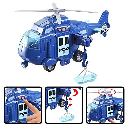 - REAL FUNCTION. This toy set comes with various realistic designs and functions: Fire Engine has a flexible water pump, which can be rotated. an ambulance has an opened door to pretend to send the wounded. The wounded can lie flat on a stretcher and wear a seat belt for him. Rescue helicopter has a rotatable propeller. Hoist cable of the helicopter can lift up the stretcher, pretending to transport the wounded. Endless fun!