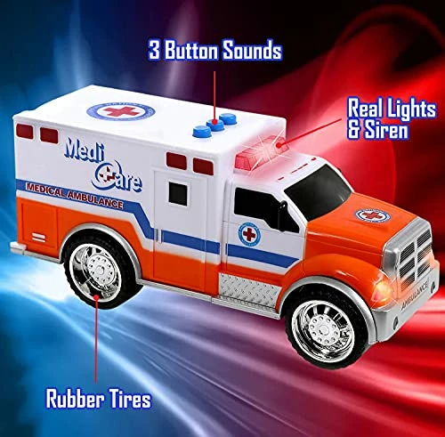 - ✅ SUPER VALUE: Set of 3 Emergency Vehicles includes a Police Car, Ambulance and Fire Truck with Lights and Sirens Sounds.