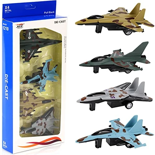 - MULTIPACK: Die-cast metal fighter jet toys brought to life with authentic detail. SET of 4 includes gray, desert, green, and blue jet fighter planes.