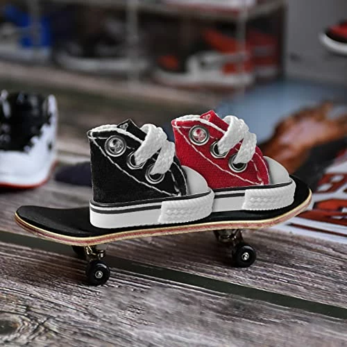 - γPortable and Fingerboard DecorationγThese mini finger shoes have mini size, easy to carry in kids’ pockets when they play outside. Pair of mini shoes for use when riding a fingerboard or for addition to scene for fingerboard decoration. These finger shoes can be easily stored in a sports bag, wall, locker, door or lanyard, which bring lots of fun and enjoyment to kids.