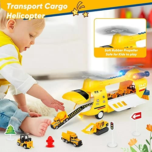 - Construction Toy Helicopter Play Set – Our construction toys set consists of 1 helicopter, 6 mini toy cars, and 12 traffic road signs. Your child can enjoy great fun in scenario simulation, which is helpful for early education enlightenment, social skills cultivation, transport knowledge cognition and so on, this helicopter toy will be the most popular construction vehicle toys among kids.