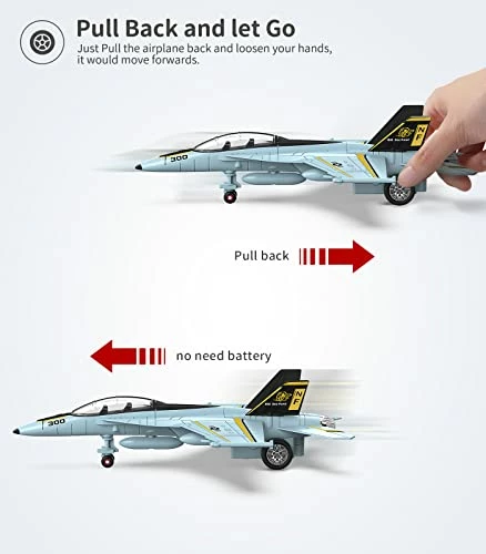 - Pull back Action: No batteries needed to fuel the fun. Just pull back the fighter jet plane and watch it race across the floor. The size is about 8.66 * 6.1 * 2.48IN, fits well in kidsโ small hands, helps improve the pincers grip of your child.