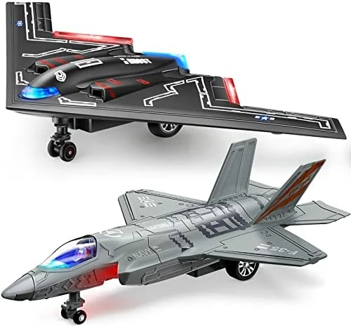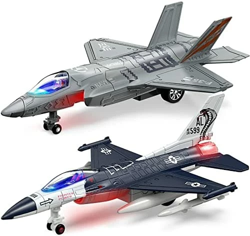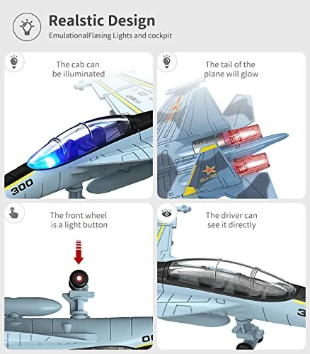 - High Simulation Led Lights Design : Diecast fighter jets brought to life with authentic detail. working front wheels, and smooth surface. For a more enjoyable play experience the fighter jet is equipped with front and back LED lightsย .Simply press the front wheel of the fighter jet for the front and back lights to flash while action sounds begin to play.