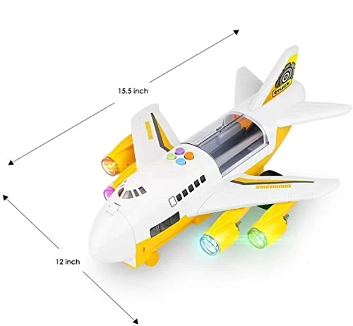 - γTransport Cargo Airplaneγ- Capable to load 6 cars inside the Container. Inertia wheel on the airplane gives the plane a long run after a strong push. Four bottoms makes four different sounds effect and lights. 3 AA batteries required. (NOT INCLUDED)