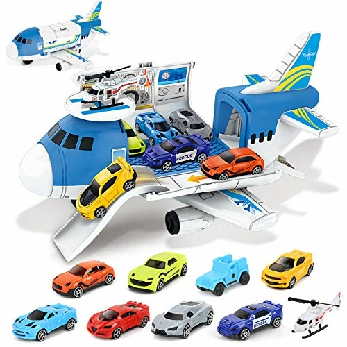 - βοΈγSUPER VALUE AIRPLANE TOYγ: The Cargo plane set including 8 different colors cars, 1 helicopter ,1 cargo aircraft, 16 accessories and etc. On the market, only 4 cars in the airplane toys set. but we have 8 cars and 1 helicopter.