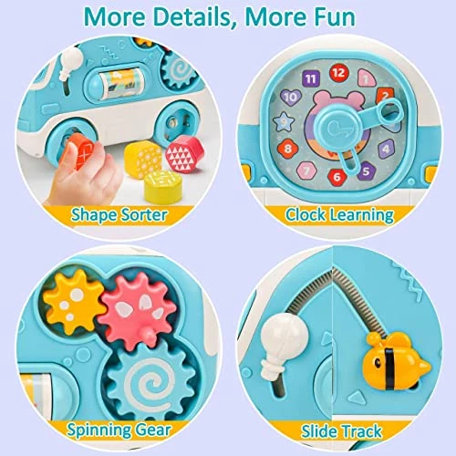 - Baby Musical Bus Toys : Musical school bus baby toy 6-12 months with different functions on all 5 sides, vivid colors, cute cartoon outlook. Surely believed that will catch babies’ sight and brings endless fun for your baby. Great infants toys 6-12 12-18 months brain development, baby sensory toys for 1 2 year old.
