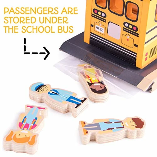 The six students and bus driver fit securely in the slots in the bus. Each can be removed easily through the large opening when the roof is removed. Easy grip hole letβs kids remove and replace it themselves.Rolls easily on carpet or hard surfaces.Fun toy for our kindergarten grandson.