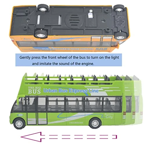 - Function — Gently pressing the front wheel will turn on the light and sound effect and make a sound like the engine of a bus. Pull back a distance and release your hand, and the bus will automatically run forward.