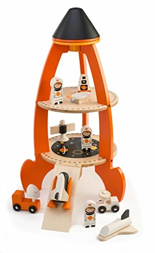 - SPACE TO PLAY: The wooden rocket is ready to be launched! The Cosmic Rocket set has everything your child needs to explore the galaxy. Prepare to land on a new planet with space shuttles and satellites!