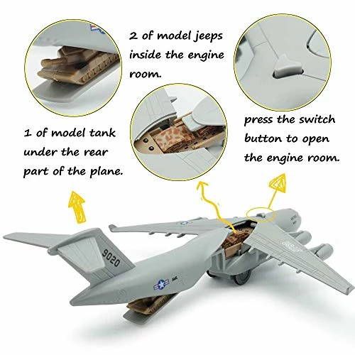 - ✈ Cool Plane Toy: Press the switch button on the body, the engine room will open with voice and the light will flashing. You will hear a person as if he was talking to you.