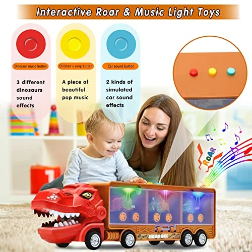 - γDinosaur Toys for 3 Year Old BoysγThe dinosaur toys cars set is a combination of dinosaur toys and car toys, including 3 pull back dinosaur cars toys and 1 big dino carrier truck. The dinosaur truck is designed with a dinosaur head, all accessories are dinosaur themed. This set of kids toys can not only take your children to understand and enter the dinosaur world, explore the mysteries of the dinosaur world, but also develops your child’s thinking and cultivate children’s hands-on skills