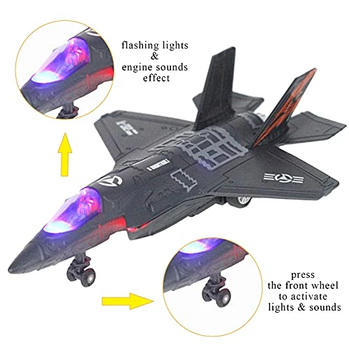 - BOMBER PLANE WITH LIGHTS & SOUNDS. With a slight press of the nose of the military airplane, three lights would flash along with the sounds effect. Kids would be delighted by such an additional highlight.
