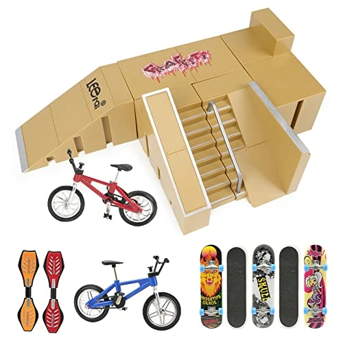 These fingerboard skate parks are great for my 13 year old. He has a whole table set up and the skate parks makes it come alive. The bikes and all the fingerboard that comes with this package isn’t all that great, but the park itself is very nice.