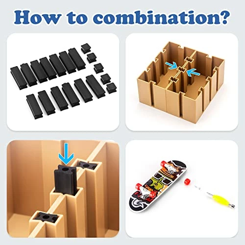 - ?γPackage Includesγ8PCS Finger Skate Park Kit Ramp Parts contains ramps, stairs, rails and more. 3 Fingerboard, 13 Long Connectors, 5 Short Connectors. 1 screwdriver, 1 Instruction Sheet. The pattern of finger skateboard is sent out randomly.