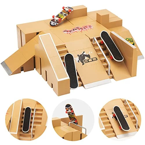 Great game toys, simulation mini ramps, and stairs can help practice fingerboard skills, such as flipping and kicking. In particular, eight parts can create different fingerboard skateparks. My 5-year-old son is studying their new playing styles daily and has unlocked three scenes. Sometimes he uses his fingerboard to imitate skateboarding competitions. I will buy another set of these for him to play with. Maybe it will be the enlightenment of his hobby in the future.
