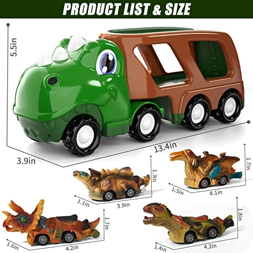 - ?Dinosaur Car Truck Toy Gifts For Boys Girls Toddlers – This dinosaur cars toys for kids boys not only acts as an attractive toy that kids can play with for a long time, but it also works on your child’s hand-eye coordination. Beautiful gift box, high quality, highly recommended as birthday gifts, kids gift ideas and party favors, holiday, birthday gifts for 1 2 3 4 5 6 year old boys and girls.