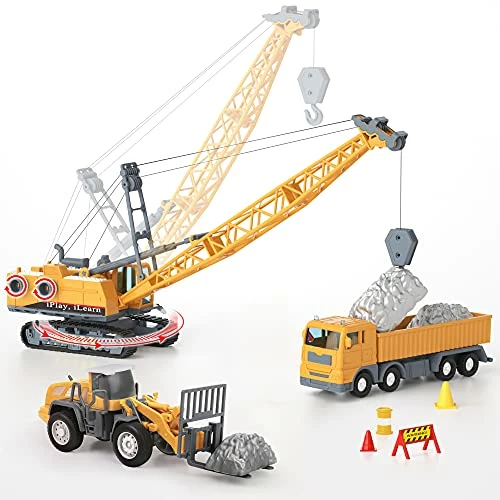 I wrote a previous review stating this was not as pictured… well, turns out my husband just never brought this one out of his truck until yesterday. So, I am so sorry for the misleading review! If I can find it, Iâll take it down. Anyway, product IS as pictured, and very cool. I took off 1 star because it is not as well made as other iplay ilearn toys Iâve bought, and thatâs what I expected for the price, quality. It is more plastic and hardly any metal. The small trailer truck is an entirely different scale from the other items. The crane works, but could really use some stops and guides to keep little kids from tearing it all up. Overall, still a good set of toys!
