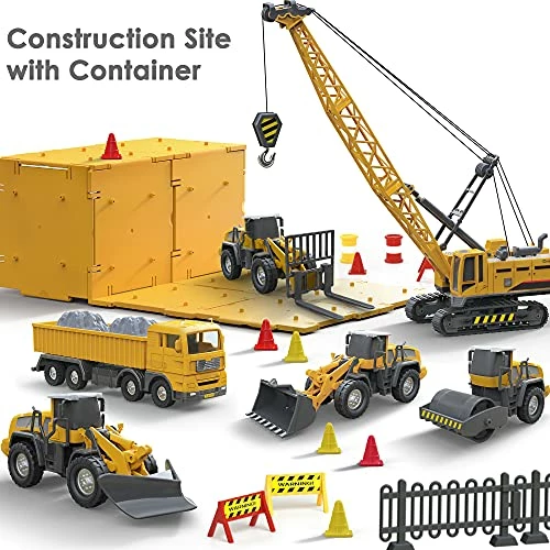 - ăWhat Includedă76 total pieces engineering construction vehicle set with Crane, Trailer, Steamroller, Bulldozer, Forklift, Snowplow and Truck.