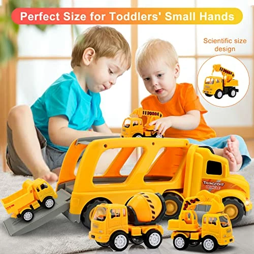 - ใQuality Toy Trucks for KidsใToys construction car with high quality and durable soft plastic. The outline of each toys car is designed to be very smooth, 100% friendly for kids. The 5 in 1 construction truck toys car for 1-4 year old boys as Xmas birthday festival gifts. Beach toys for toddlers 4-5.