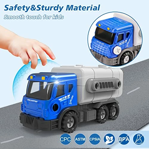 - SAFETY & STURDY MATERIAL- The materials of toddler boy toys are very sturdy as they are made of thick hard ABS plastic which is BPA-free and is also toxic and lead-free. All parts of the toys for 3 4 5 6 7 8 year old boys girls have rounded edges and smooth touch, safety for playing. 5 Truck heads are made of high-quality alloy metal which is very strong and durable. Besides, our construction toys for 3 year old boys meet strict product safety standards, including CPC, ASTM, and CPSIA, and let your child play with the kids toys with no concern.