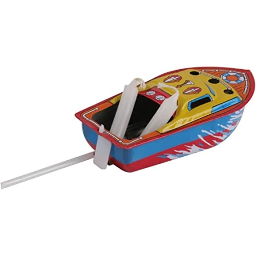 – This STEAM BOAT tin toy uses an actual flame and candle to heat the boiler and move the boat through the water using its exhaust pipe.