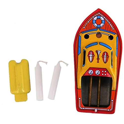 - * This STEAM BOAT tin toy uses an actual flame and candle to the boiler and move the boat through the water using its exhaust pipe.