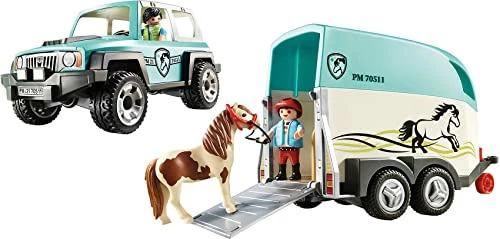 First Playmobil toy for our 2 1/2 year old grandson. He loves playing with the car and putting thehorses back into the trailer.