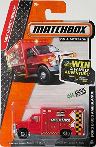 - Red AMBULANCE 2012 Matchbox MBX City Ford E-350 Super Duty Ambulance 1:64 Scale Collectible Die Cast Car Model