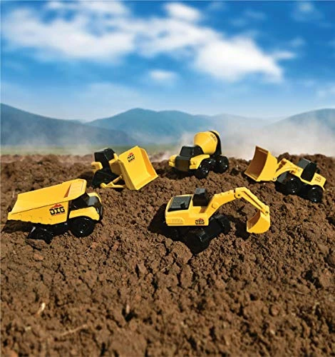 - 5 MINI VEHICLES: Special five pack includes Dump Truck, Front Loader, Cement Mixer, Bulldozer and Excavator. Kids can play individually or with friends.