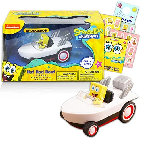 - Spongebob Pull Back Hot Rod Boat – Spongebob Gift Bundle with Spongebob Toy Boat, Stickers and More (Spongebob Toys for Boys).