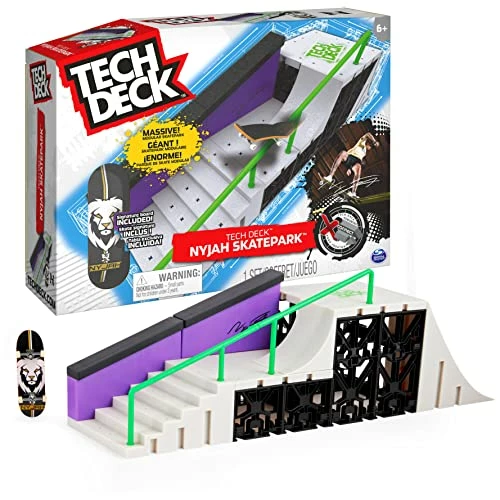 - CUSTOMIZABLE PARK: Recreate or customize your mini skateboard park with the Tech Deck Nyjah Skatepark X-Connect Park Creator skateboard ramp set; Set up different combinations with a stair set, rail, Hubba ledge, and ramps to learn and progress your tricks