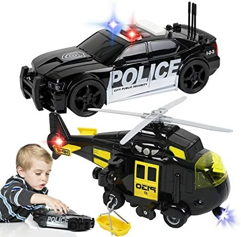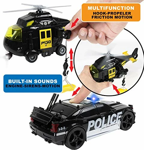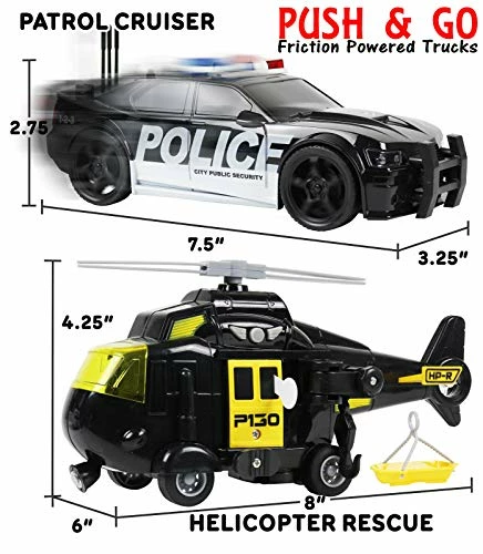 - INCLUDES IT ALL! – This Super Value 2 pack emergency vehicles toy set includes a police car toy & a rescue helicopter