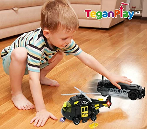 - FEATURES – These emergency vehicles have realistic lights and sounds. The rescue helicopter comes with a rotatable propeller, & the hoist cable of the chopper can lift the cargo basket to enhance the fun!