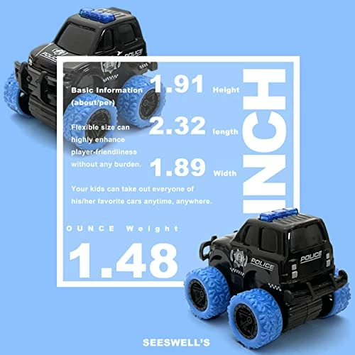 - ?γREAL FUN & FUNCTIONγSEESWELL’s City Police Vehicle toyset introduces your kids to a world of fun and excitement with learning experiences.Β Featuring realistic fine details with friction powered wheels and cool rims.Perfect for boosting your childβs cognitive development, hand-eye coordination, imaginative skills!Β