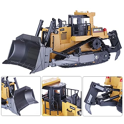 - Remote Control Bulldozers: 2.4G wireless all-round remote control, 9CH can remote control forward, backward, left, right, can control the Forklift up and down , The ripper rises, the ripper falls