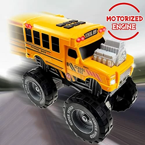 - MONSTER TRUCK: Add style and smashing to their play time with this motorized monster truck toy inspired by the school bus.