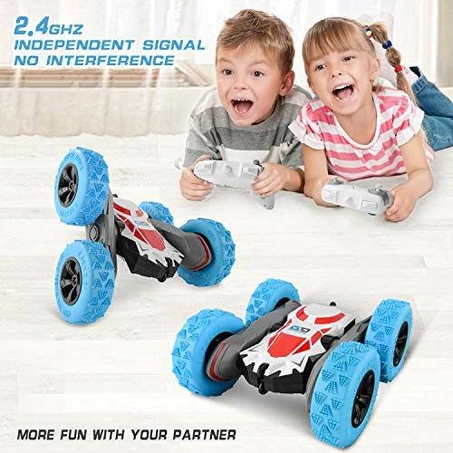 - Crazy RC Stunt Car – Features on 360-degree rotation on dual-sides, race to drift and flip the remote control car all-around as you like. Control friendly for children to operate this off road stunt car via remote easily. Loads of fun for your kids.