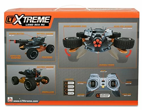 - Contents include: One Land Sea RC, one controller, 10 missiles that float, one USB Charging Cable and instruction guide
