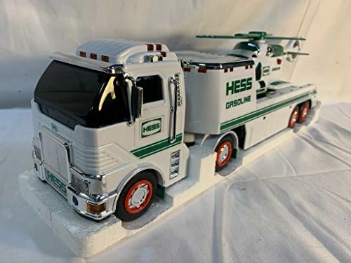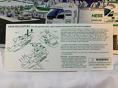 I purchased this as a birthday gift for my 3 year old son who wanted something a little more interactive… he calls it his βspecial toyβ now and absolutely loves it. This being my first time with Hess, I can tell they put care into the design of their products… superb overall (had me wishing they made toys like this in my early days)!! The semi truck intricately lights up all over with 2 C batteries and has buttons for various patterns of blinking lights to help the chopper find its way to the landing pad (the truck bed). The real masterpiece though is the helicopter itself, which lights up and spins its rotors with the push of a button on 1 AA battery (and for all the action the battery seems to last a good while). Itβs lightweight (so easy to carry) but pretty durable in hands his ageβthe only minor issue is the green tail elevator fins which easily pop off and are now permanently kept off for safekeeping. Happy flying!! Would gladly purchase a Hess product again.