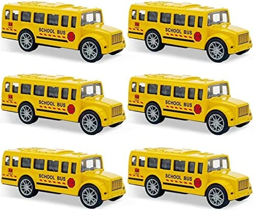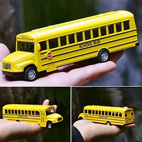 - 2 PCS School Bus:This diecast bus toy is a miniature replica of a classic yellow school bus. It measures 5.5 inches in length and is crafted with a realistic look. It does not require batteries to operate.